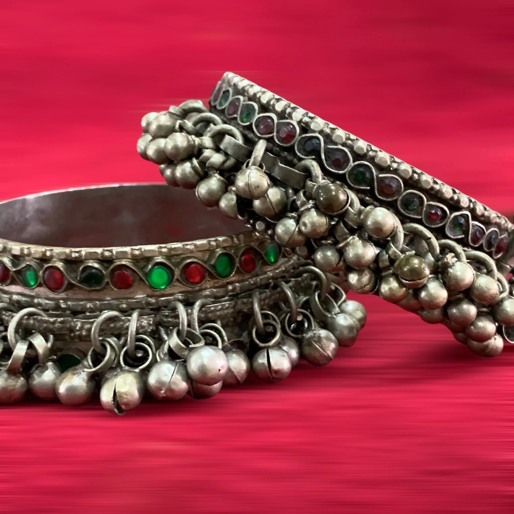 Par de brazaletes Kuchi con sonajas (tribus nómadas entre Norte de India, Pakistan y Afganistan).