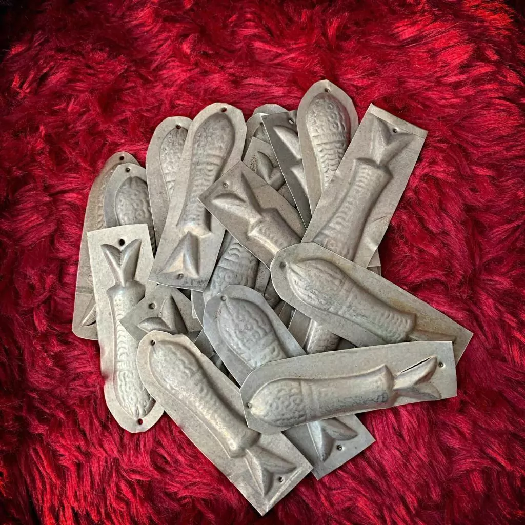 Piezas de botones ornamentales kuchi en color plata, realizados con técnica artesanal de impresion de prensa en relieve con figuras de dos aves y flor en el centro, con dos perforaciones, ideales para confeccion de vestuario.