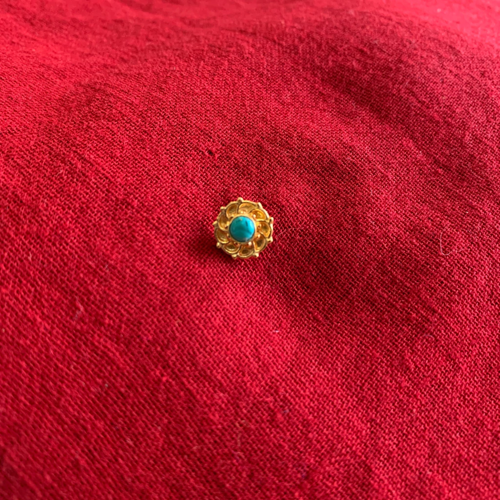 Piercing Stud de plata .925, con acento en color verde, diseño y modelo original de la India.